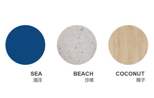 步入椰子内部,从椰壳而入,映入眼帘的是一大片呈现蔚蓝色调的海滩风貌。在这个空间范围之内,存在着诸多品牌元素的渗透与运用,其中不乏门类众多且大小有别的样式东西 ,大的诸如门头以及隔断,小的像屏风还有灯笼。