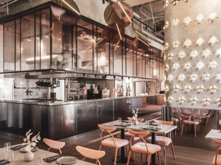 灯光的色调,是用来协助餐厅去调动顾客情绪以及用餐氛围的,就比如说网红店面,那个叫“炼金术酒吧”的,原本它是一个呈现出美式风格的酒吧,过去的人们早已对沉稳的空间体验习以为常了。炼金术呢,它是早期科学的前身,当初这可是中世纪化学哲学,然而丰富的本意反倒成了酒吧主题确立时面临的难题。之后,“原始的安全感”变身成为酒吧和炼金术之间的灵感桥梁。这样一来,“金库”便以容器的身份,介入到这场空间的游戏当中了。厨房,它与吧台台面呈一指相扣状,然而这个厨房,却扮演着仿若室外建筑外立面那般的角色,为后续的空间体验奠定了基调。灯光选用暖白色调,并将其与空间主色调灰色以及相应的金属元素一一搭配。