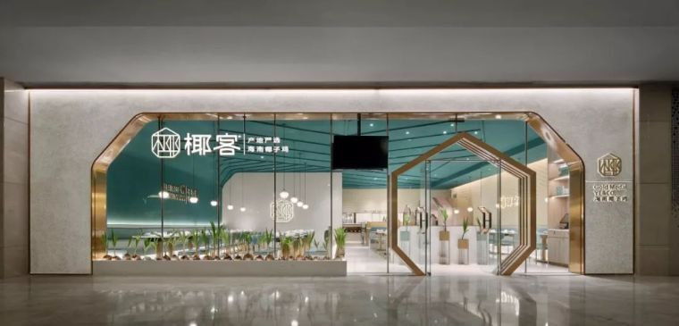 本案的门头,其识别程度非常高,取自椰客品牌标识的“椰壳”部分,乃是进入的起始点,而门把手则是缩小样式的椰壳形态,这属于对之前店面经典元素的承接以及延伸。