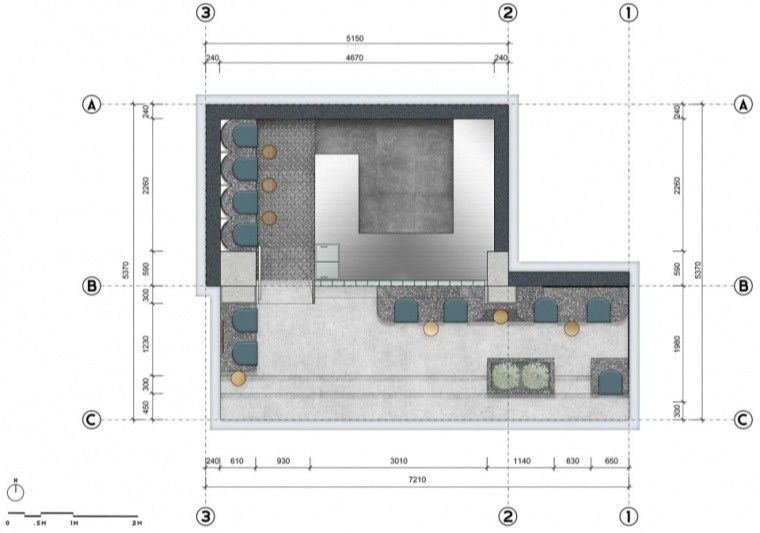 咖啡厅彩色平面布置图↑