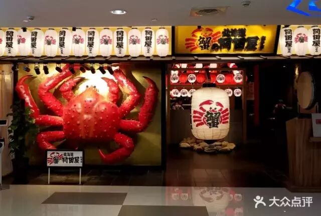 存在一个归属于特色范畴的品牌印记,不但自身携带着娱乐属性,并且在极大程度上能够提升辨识度。就蟹的冈田屋而言,这只位于门头上的大红蟹乃是其最为独特的记忆要点。