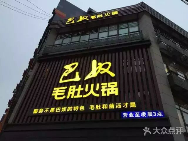 巴奴毛肚火锅于门头设计方面,算得上是较为简单粗暴的啦,它以那样的形式,即品牌名加上品类,把自身形象以及特色招牌鲜明明确地借着门头逐一传递给消费者,其表述直白清晰,极为有助于顾客形成记忆重点饭店门面广告设计,这般便巧妙地将涮毛肚与巴奴紧密联结在一起了。