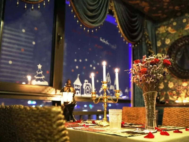 身处此地,同样能够目睹浪漫撩人的夜景,还有散发着独特香气的香薰,以及娇艳欲滴的鲜花,它们为整个包厢额外增添了诸多的情趣。