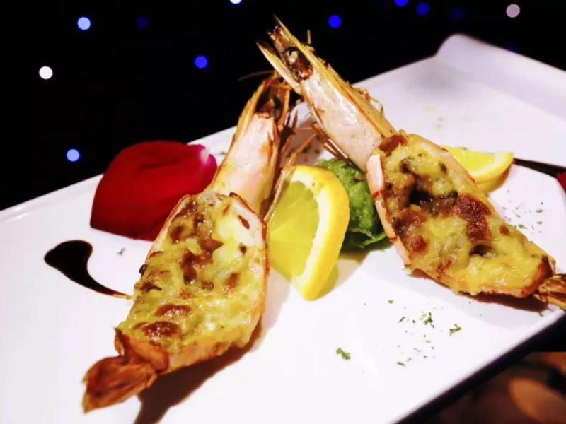选择新鲜的大海虾,予以特殊腌制后施以撒沾芝士之举,进而实施高温烘烤之法。虾肉所呈现的状态是爽口且Q弹,芝士具备清甜且不腻之人特性,整体口感爽到令人极度震撼!