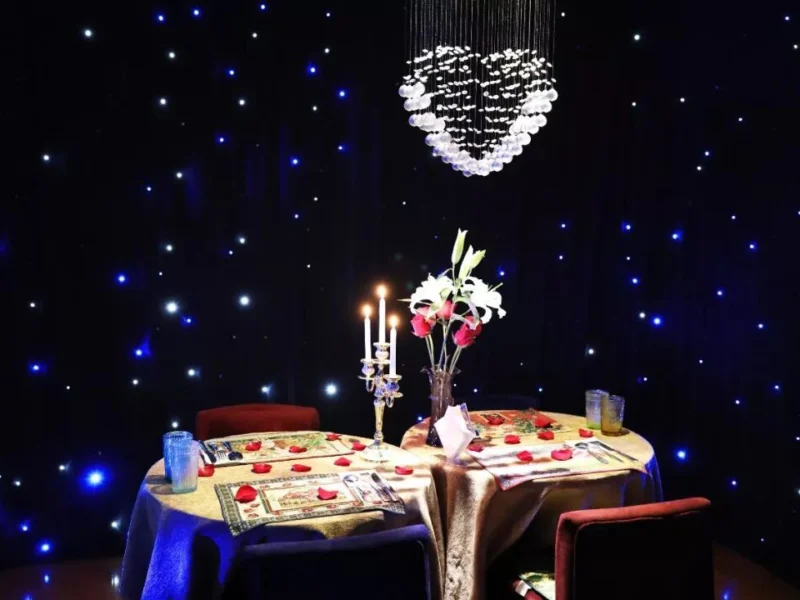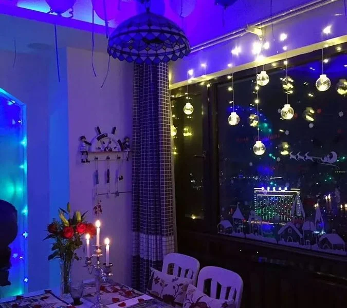 店里主打主题是星空包厢,当将全部灯光打开,而后点上蜡烛时,真的会有一种仿佛置身于那无比曼妙星空之中的独具特色感觉。