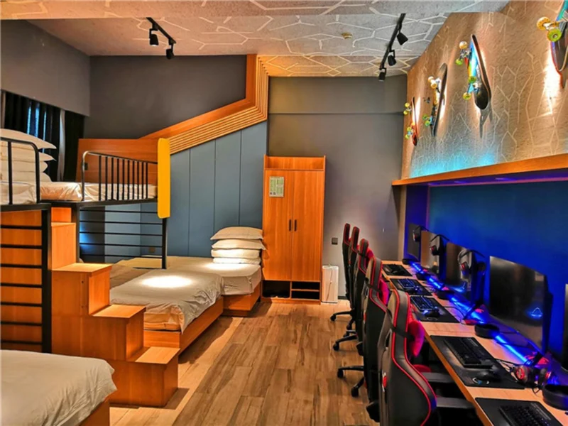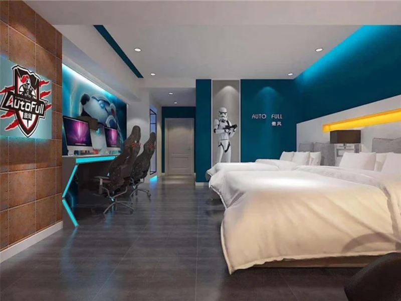 现在,为了把年轻人吸引过来,不只是电竞酒店,其他赛道上的酒店也都纷纷着手增添社交娱乐元素,给自己贴上“年轻人社区聚集地”的标签,然而在细分市场里电竞主题酒店装修设计,年轻人或者说酒店人究竟需要的是虚假元素还是真实元素,就如今的细分市场情况来讲,这些添加的元素还仅仅停留在标签化层面,比如说以电竞酒店为例,很多酒店目前是不收费的,可我们不一样,我们将电竞元素视作能够独立运营且盈利的业务,而不只是那种仅能增加客房收入的噱头。