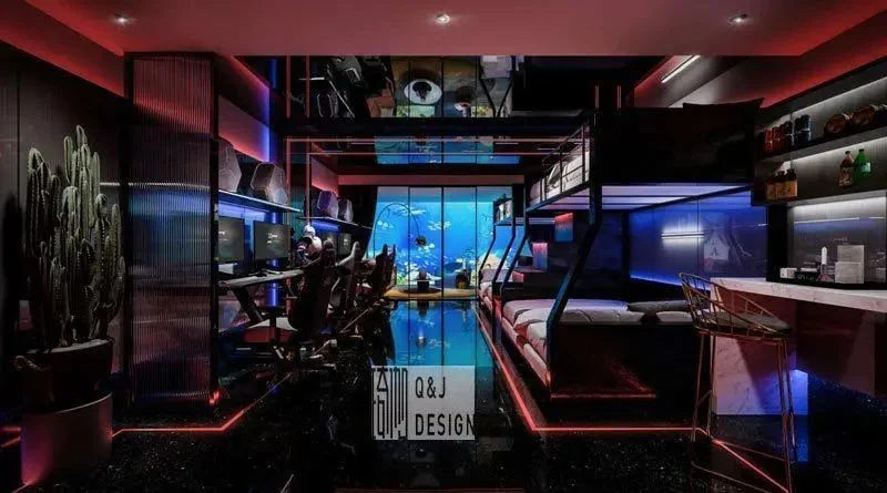 电竞用户群体,和其他酒店的消费群体比起来,在审美方面存在着一定的特殊性,于用户心理层面,他们会更倾向于氛围融入感,还更加倾向于游戏里的场景设计以及氛围营造。整体而言,电竞用户心中理想电竞客房设计风格具备这样一些特点:其一,是采用幽蓝、魅红等带有科技感的颜色;其二,呈现出简约、精致以及科技感十足的状态;其三,拥有足够的场景氛围。