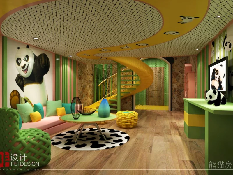 亲子酒店的消费主导者是孩子酒店主题房设计,所以进行设计时,要着重关注孩子的体验,以孩子作为核心,去塑造契合孩子心理的环境。可以摆放一些为孩子所喜爱的玩物以及卡通造型。在软装家具方面,要紧密贴合孩子的需求,像尺寸适宜的儿童床,儿童浴袍与小拖鞋,儿童牙刷和牙膏,儿童洗浴用品,防撞角,安全插座,小马桶,能让儿童开心的布娃娃,儿童读物等,这些都能够成为亲子酒店的加分亮点。