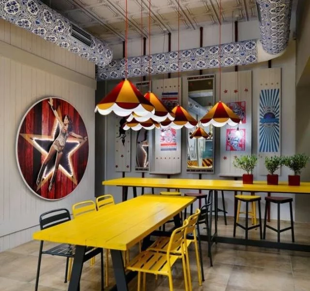 瞧,无处不在的马戏团元素。在这个拼颜的时代餐饮设计,没有一个标新立异的主题,你都不好意思说你是开店的!