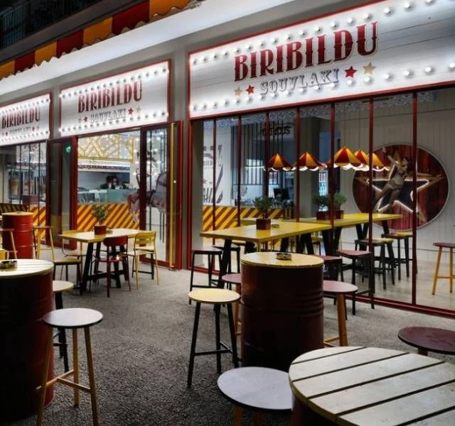 以马戏团帐篷标志性的红黄色为基调,室内建筑师Minas 在希腊雅典创建了一间名为的马戏团主题速食休闲餐馆。