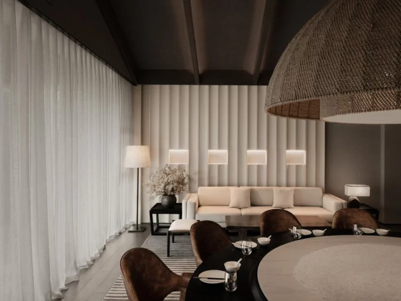 山野风装修易陷入 “重自然感轻实用性” 的误区。不少酒店盲目堆砌石材、原木等自然元素,却忽略了床品布局、采光通风、收纳空间等实用需求,导致住客体验感大打折扣。我们在成都工装服务中,坚持 “自然为底,实用为核” 的原则,以原木梁架、藤编肌理还原山野质感,同时优化空间布局,用全景落地窗引入自然采光,让野趣风格与居住舒适共生。