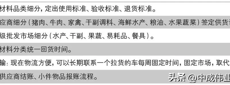 关于“采购”这个岗位,作为餐饮业的“入口”,其工作从来不是轻松的。试想,餐饮采购的物资上千种,每个品种的进货渠道都不一样,标准要求各不相同,价格和质量也有很大差异,要采购价廉物美的物资,确实不是件容易的事。所以很多餐饮企业都会设有专门的采购人员,自然这也是一部分人力成本的支出,喜悦饭店却将这一重要的部门取消了,没有采购员和采购车,而是采用“以销定产,以产订购”的方法,集中出品,只考虑一周的量,不设库存,既优化了人员结构,又省去了租赁仓库的费用,光采购这一项目一年节约下来的成本就有17.7万元,为企业增加了118万的营业额。