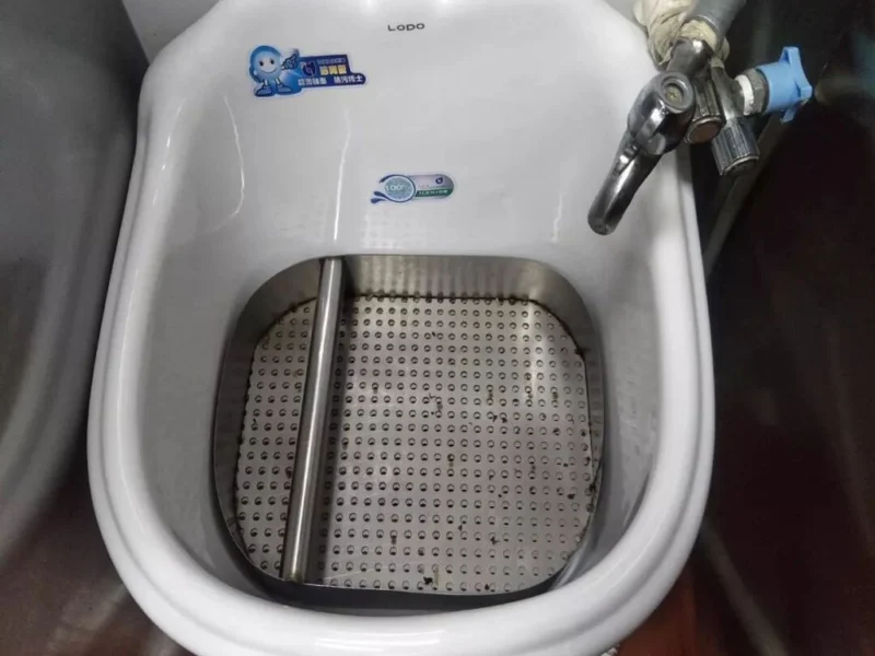 在墩布池内侧加装漏网(不锈钢),避免员工随意倾倒茶叶水,造成管道堵塞