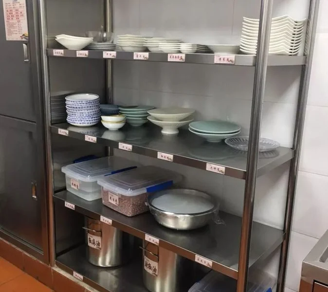 凉菜房规划餐具存放处,张贴标签,做到“名上有家、家上有名”。