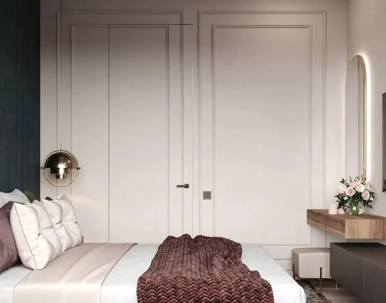 卧室的门都采用了隐形门设计,和墙面的护墙板融为一体,这种隐形门设计现在也很流行!