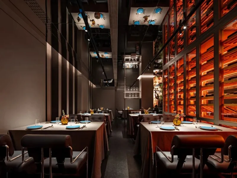 2023年6月,萬蔚与IN.X屋里门外携手,在北京王府井商厦完成了萬蔚烤鸭·北京菜餐厅设计。从成都到北京,从地域美食到百年金街,这又是一次古老和当代、成都和京城、传统与热血如何相融的课题——这一次,吴为相信文化和氛围混合了,才有故事发生。萬蔚烤鸭·北京菜由此而生。