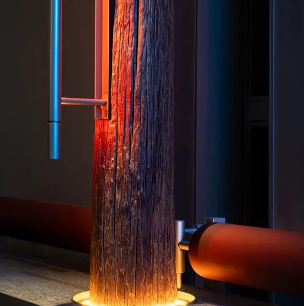 空间建立在北京的城市底色上,而其品牌又创建于成都。空间内,天府之城的气息若隐若现,设计师为了呈现这种无法被建造的无名特质,间接由城市生活中提取,正如花从种子中长出。成都自古就是移民城市,将它的包容、自在和热辣人间的冲劲儿纳入空间,由穿插互构的建筑体块、富于光泽的金属表皮、氤氲浮动的温暖色调刻画出品牌基因中的当代城市特质。