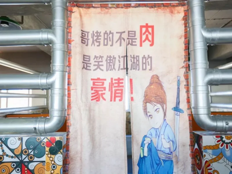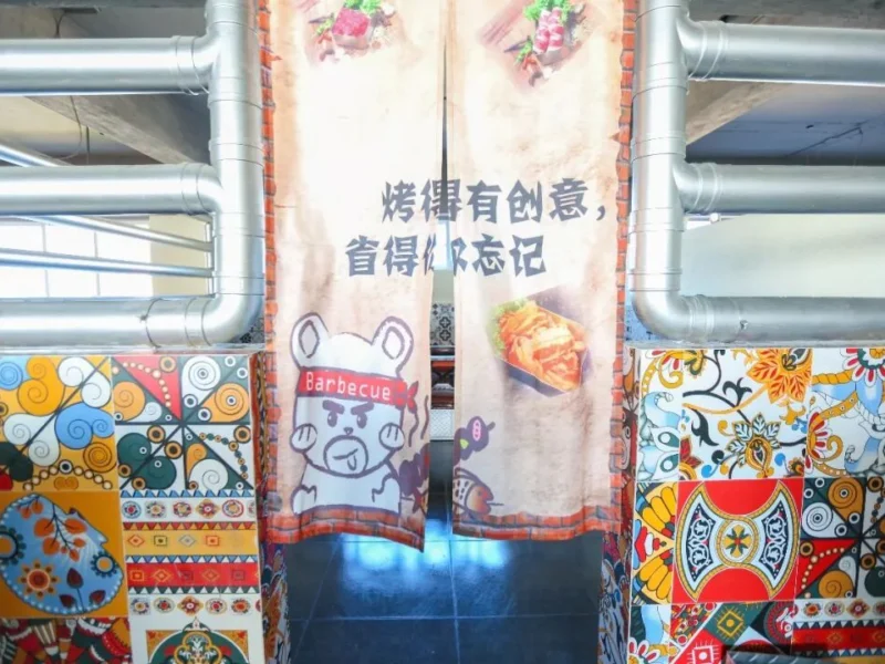 别致的包间门帘设计,也彰显车间烤肉的独特风格。