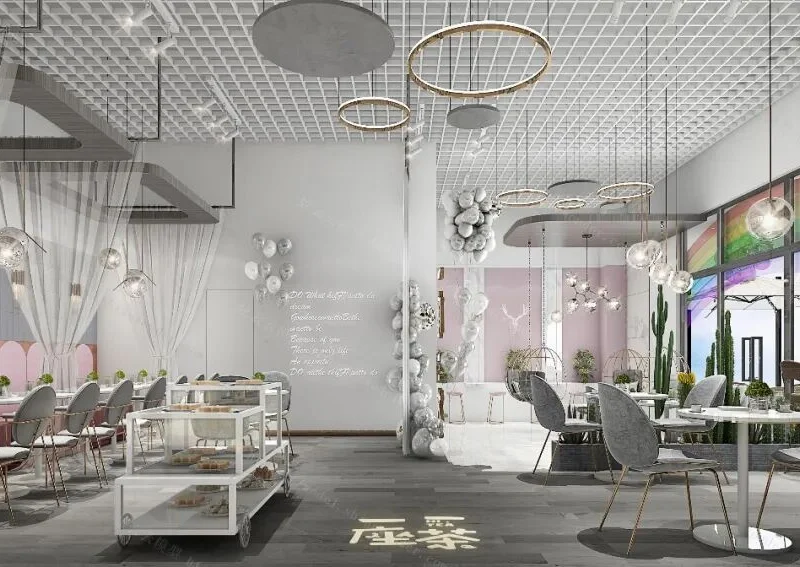 奶茶店可以多采用玻璃制品,例如:墙体、餐桌、餐椅等。既时尚又能凸显风格,且也可以节省一定的成本。此外,奶茶店的主题设计,要么将“花里胡哨”贯彻到底,要么统一一种主色调。