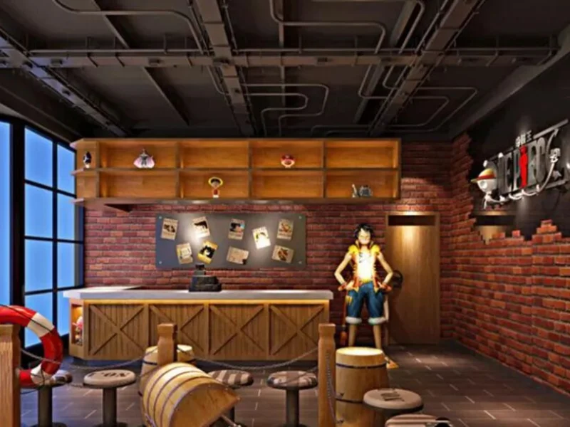 比如海贼王主题餐厅,将动漫画风在餐厅空间中穿插,高度还原漫画场景,满足人们对动漫热切喜爱的心情。