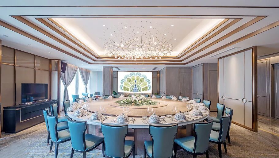 先以一家川菜来说,人们脑海里的川菜馆肯定是那种热热闹闹、充满喜庆氛围的“中国红”。然而呢,要是有这样一家餐厅,它选用了蒂凡尼蓝当作餐厅的主要色调,并且整体空间的设计更类似于一家高端西餐厅。在对于细节的处理方面餐饮馆设计装修,这家餐厅以孔雀作为主题来进行渲染,用优雅唯美的象征物去和热火朝天的川菜作对比,以此衬托出餐饮品牌的别具一格。